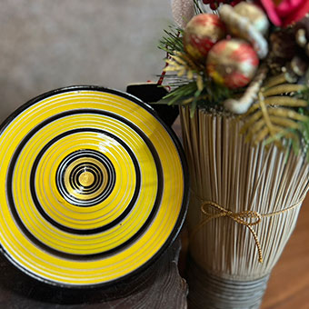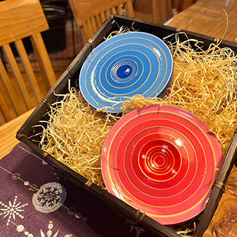 素材として用いられるのは国産木材のツバキ、コヤスなど。ツバキは割れにくく木肌も白いため色を綺麗に塗ることができよく利用されています。